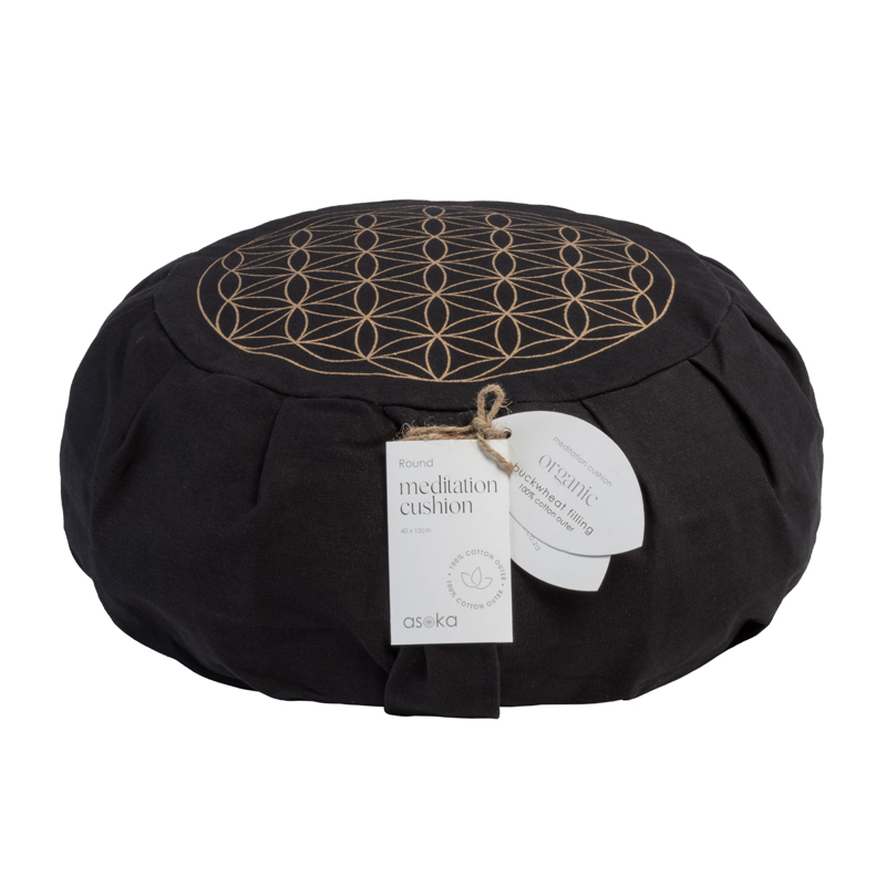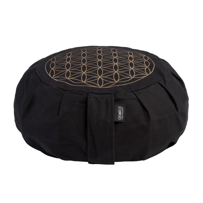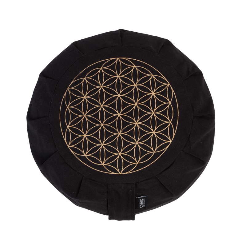 Round Meditation Zafu – Black With Gold Flower of Life